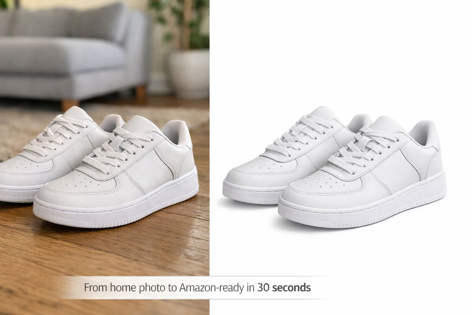 Most people don't have a photography studio. They shoot on a table, near a window, or on the floor. The result is a great product stuck on a messy background.